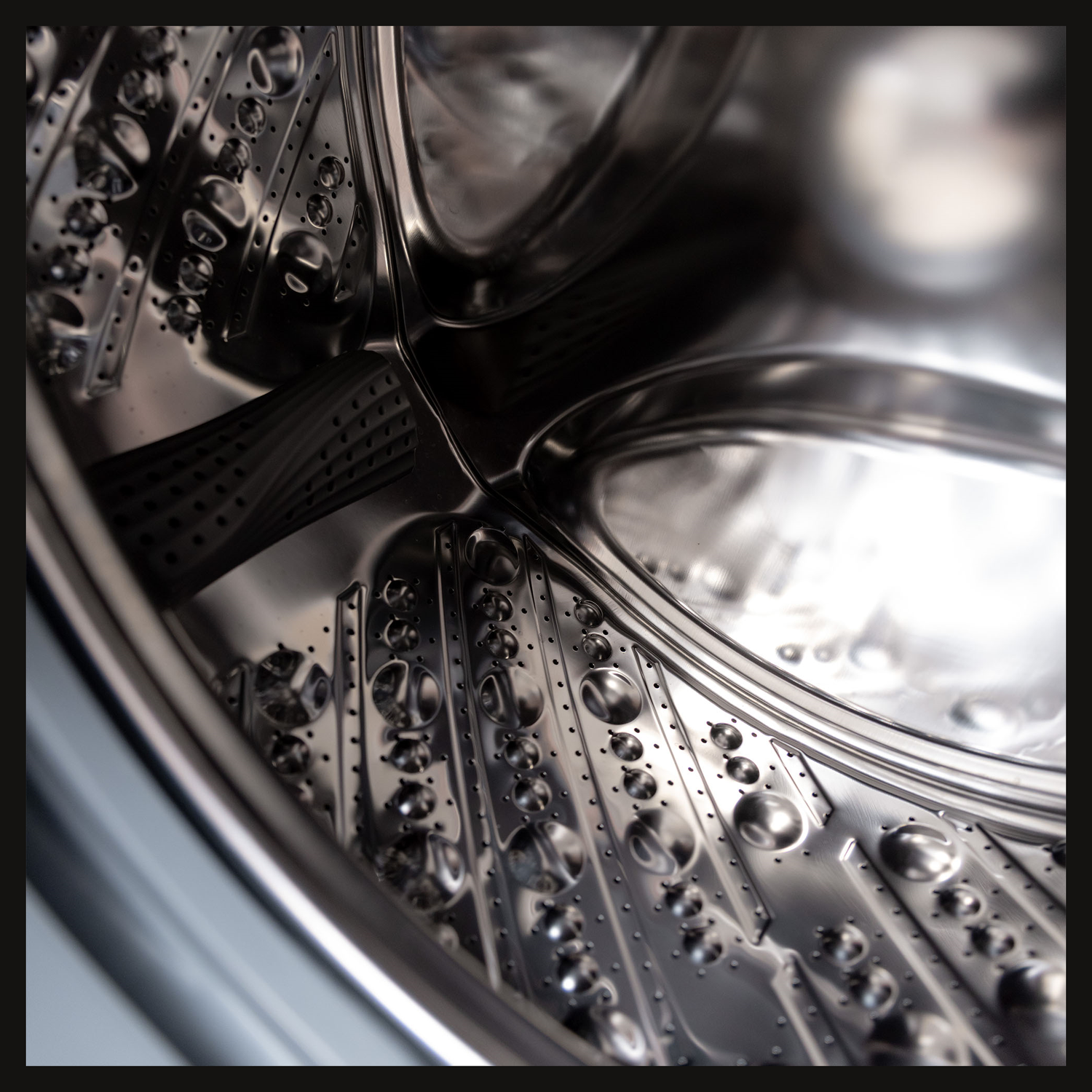 «Ребра жесткости» по бокам модели снижают вибрацию и уровень шума при отжиме на высоких оборотах.